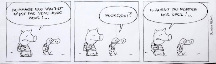 Door een reprint strook 283 uit 1990 eerder die week is strook 657 nooit in De Volkskrant verschenen Harold: Jammer dat Van Tilt niet met ons mee is gekomen!… Wilbur: Waarom? Harold: Hij had onze tassen kunnen dragen! Originele strook Dit delen: Klik om te delen op X (Opent in een nieuw venster) X Klik om te delen op Facebook (Opent in een nieuw venster) Facebook Vind-ik-leuk Aan het laden... Gerelateerd